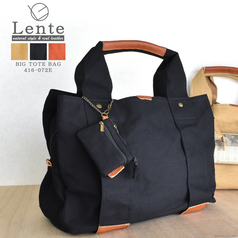 ハンドバッグ レディース 牛革 A4 B5 ブランド LENTE レンテ 416-072E 本革 リアルレザー キャンバス バック ポーチ付き 小物入れ 3層式 ナチュラル おしゃれ 大きめ 機能性 カジュアル 大容量 お出かけ 通勤 通学 旅行 シンプル 送料無料 送料込み