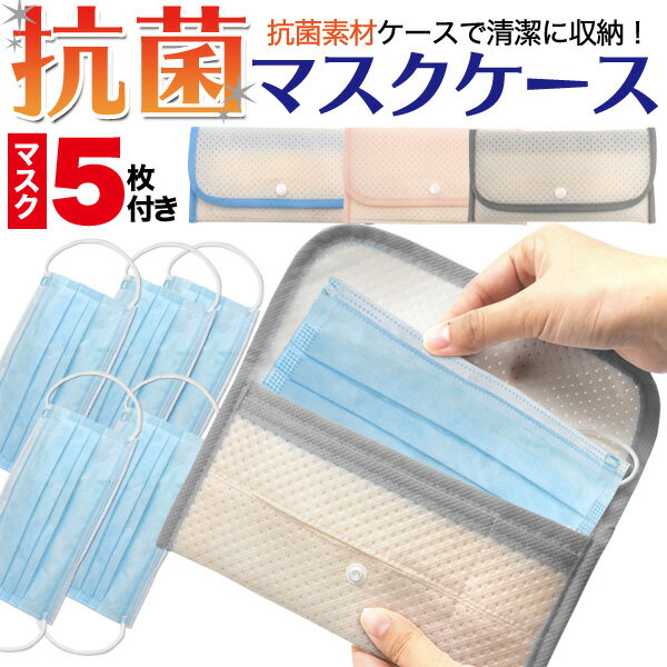 メール便送料無料使い捨てマスク5枚付属【 抗菌 マスク ケース 5枚収納可能 】 保管 保存 持ち運び 持ち歩き ポーチ マスクキーパー 携帯 マスク入れ 一時保管 一時保存 背面ポケット 小物ポケット ティッシュケース 外出 立体3層不織布マスク