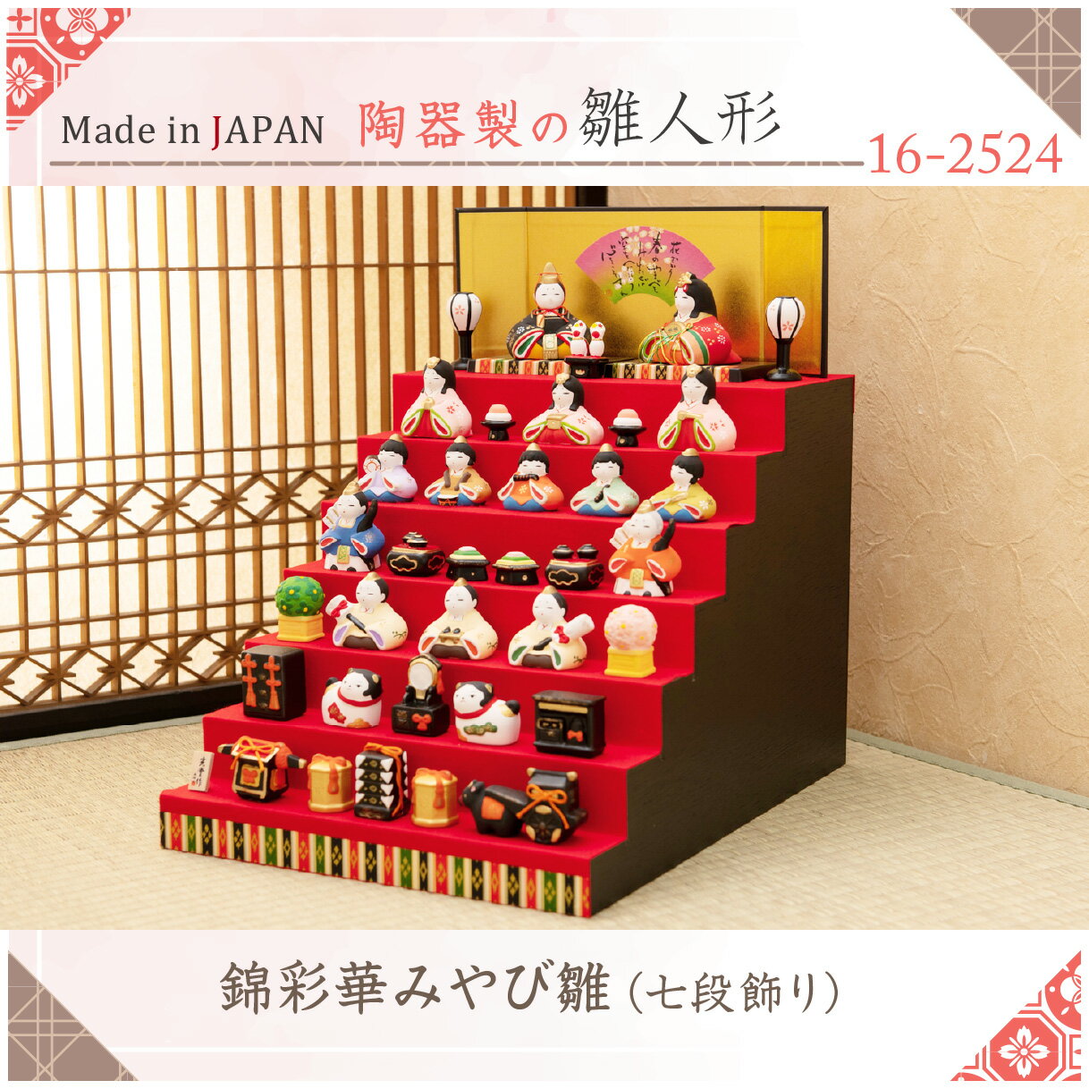 【送料無料】 2020年 人形 コンパクトでおしゃれな陶器の雛人形 七段飾り 十人飾り 【綿彩華みやび雛(七段飾り)】 陶器 薬師窯 親王/三人官女/五人囃子 雪洞/屏風/台座/桃 木/御所車/重箱 高杯/ひし餅/太鼓
